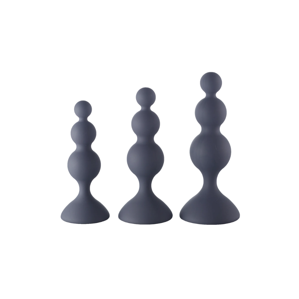 Find your fantasy with the Beaded Trainer Kit. Made of silky soft, flexible silicone, they are the perfect way to work up to your peach play goals. Each trainer is graduated in size, allowing you to start small and move up sizes as you become more comfortable. The beaded shape adds an extra level of comfort and the flared suction-cup base allows you to easily play on a variety of surfaces.